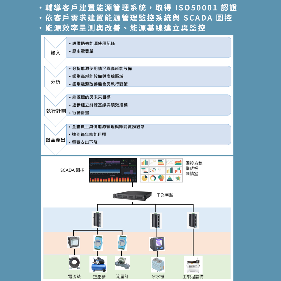 • 輔導客戶建立能源管理系統,取得 ISO50001 認證